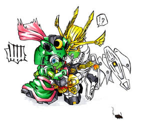女の子MSを描く練習がてら、何か「爆発しろ」って言いたくなる様な絵が描きたかったんですが、イマイチでした。女の子難しい・・・・。孔明先生、常に不安定。描くたびに顔とか色々すっごい変わる。