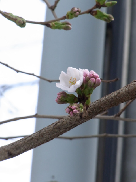 昨日仕事帰りに見たときにもうすぐ咲きそうだなーと思ってたんですが、今日気になって見たら、一輪咲いてました。