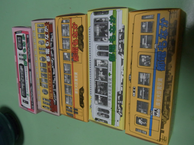 都電最中。一番左が最新車両だそうで。そういや見たな。こんな車両。