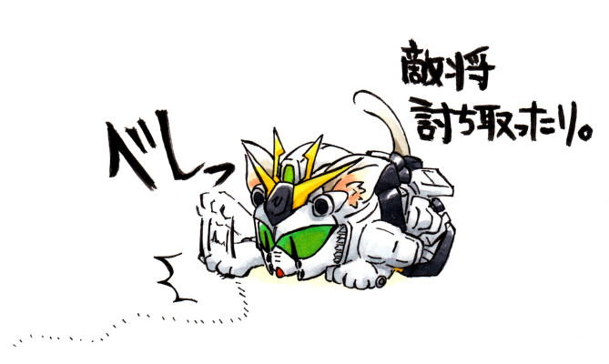 あと、pixivには載せてたんですが、にゃーがんだむにちょっと描き足して色塗ってみた。