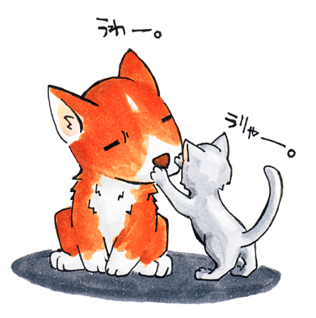 友人んトコのチビ猫が、よくウチの犬っころの鼻を狙ってくるので。ウチの犬も片足ジジイの領域に入ってるので、されるがままになってたりします。いいのか、それ。